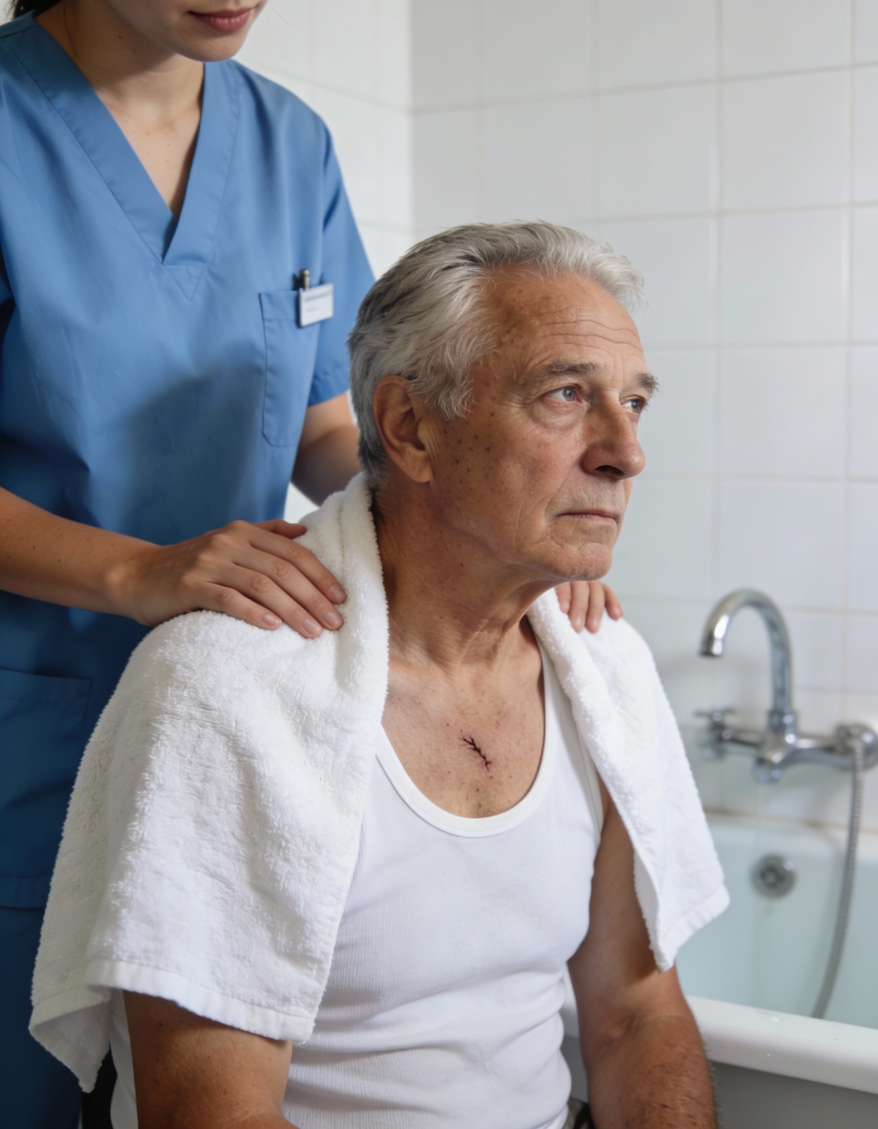 — Sunt aici, am răspuns, încercând să-mi păstrez vocea calmă. Îl spălam pe tata.