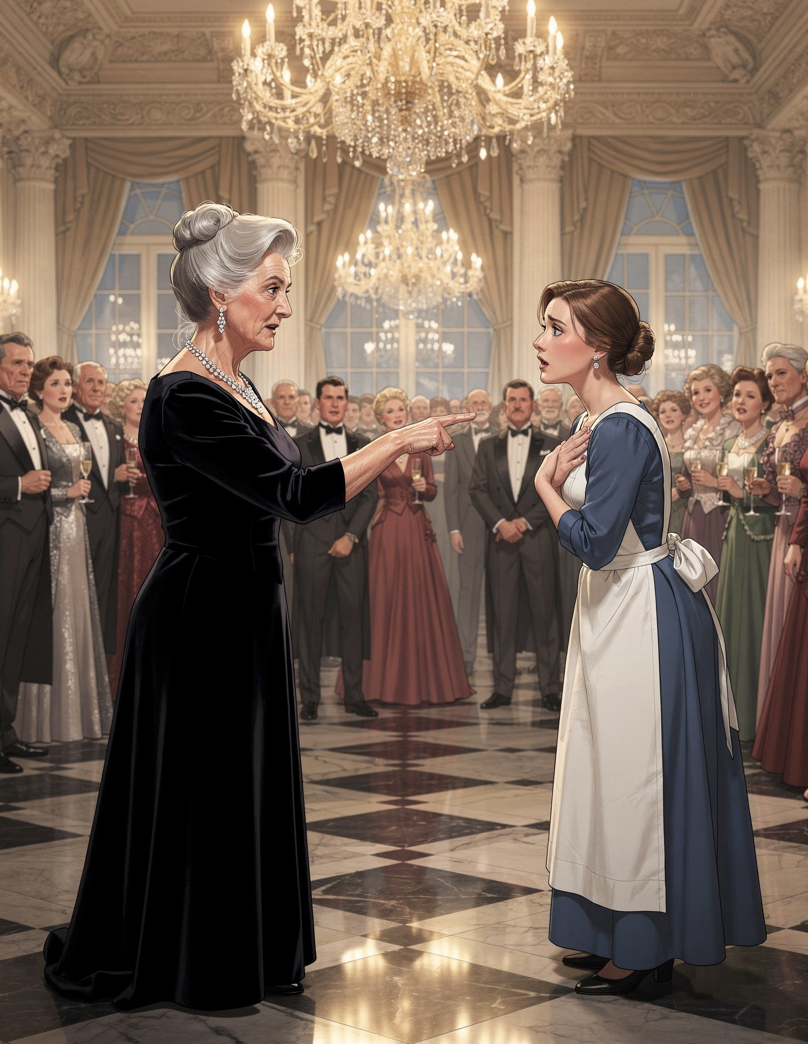 Când au ieșit din salon, invitații priveau uimiți scena. Elena a ridicat capul și a spus tare, cu voce plină de emoție: