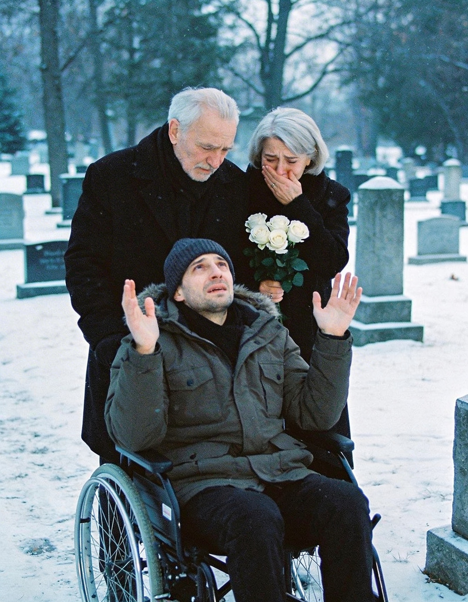 Duminică dimineață, cei trei s-au întors la cimitir.