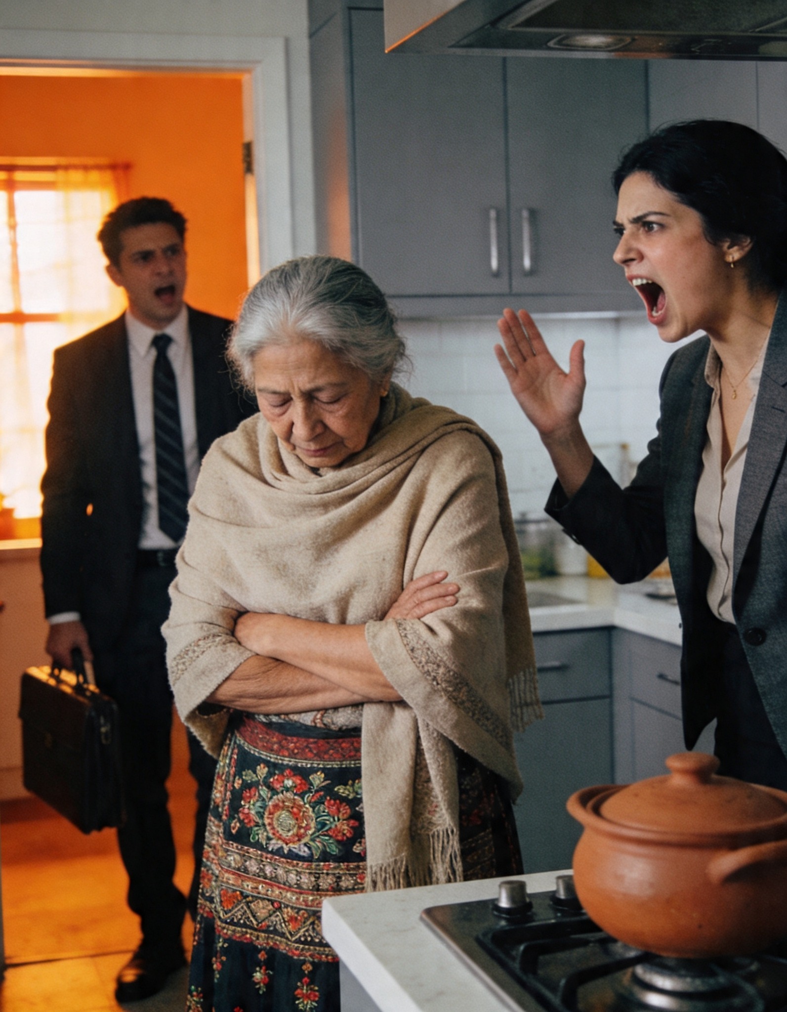 „Ți-am spus să nu te mai plimbi prin bucătăria mea! Puți toată casa! Ești o rușine!”